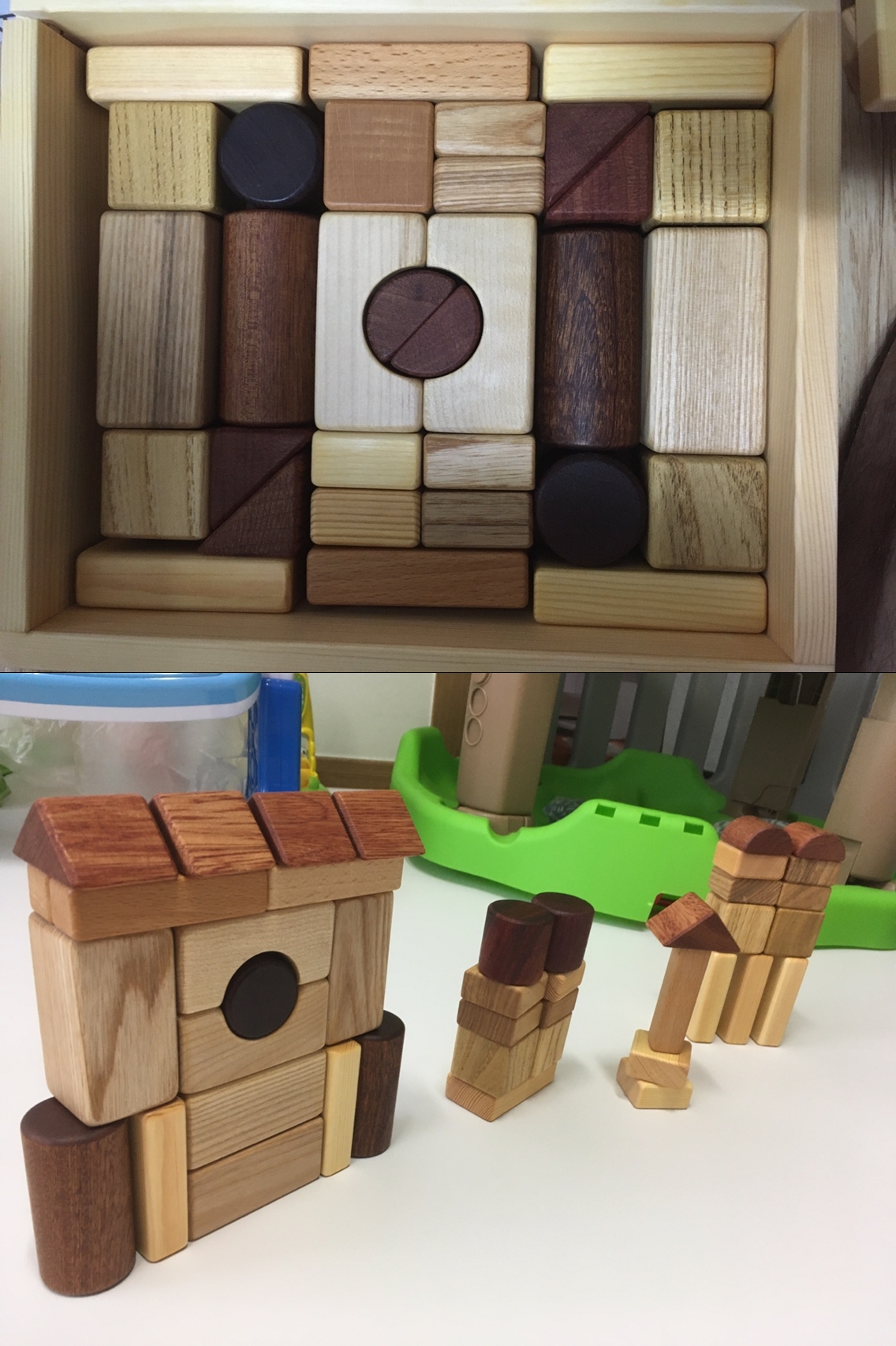 얼른 저희 꼬맹이가 앉아 다른 종류의 원목 장난감도 갖고 놀았으면 좋겠네요!